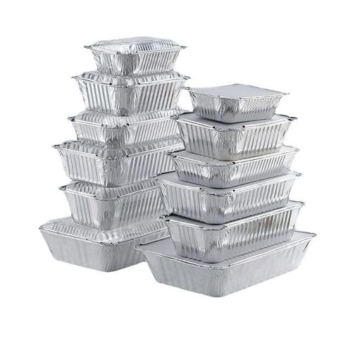 Orijinal dikdörtgen gümüş alüminyum folyo tek kullanımlık folyo tepsi tasfiye konteyner tavalar ile gıda ambalaj tasfiye tavalar için folyo kapak
