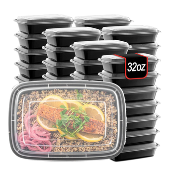 Sıcak satış 32oz yemek hazırlık plastik dikdörtgen gıda kabı siyah taban suşi erişte Takeaway öğle yemeği kutuları için temizle kubbe kapak